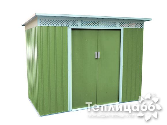 Хозблок Greenday Sally D площадь 5,8 кв.м. светло-зеленый с бежевым кантомСнято с производстваМеталлический хозблок шириной 2,5 м и длиной 2,3 м. Подходит для хранения садовой техники и инвентаря.S=5,8